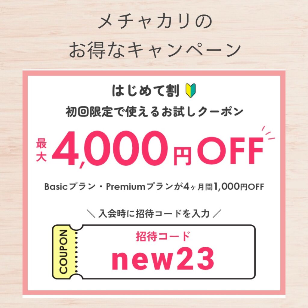 まずは、月額料金が1番リーズナブルな「メチャカリ」から紹介♪